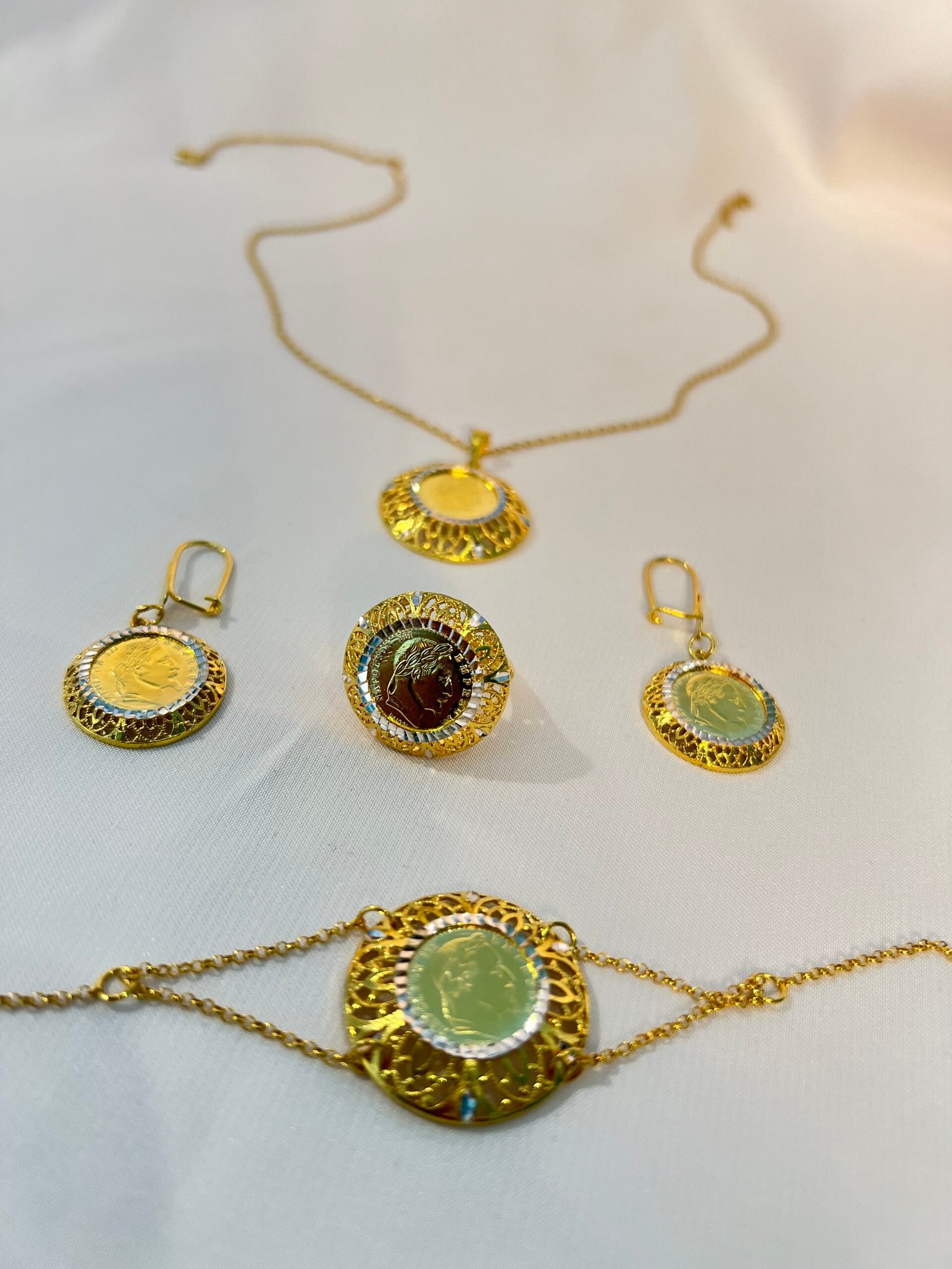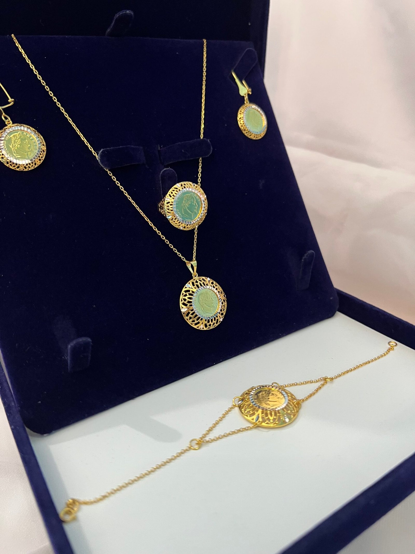 طاقم فضة راقي يجمع بين الأناقة والفخامة، مصنوع من فضة نقية عالية الجودة بلمعان يخطف الأنظار ويحافظ على بريقه مع الوقت. تصميمه المميز يناسب جميع الإطلالات، سواء للمناسبات الخاصة أو للاستخدام اليومي، ويضفي لمسة أنوثة ساحرة على كل امرأة. القطعة المثالية لإبراز شخصيتك الراقية وجمالك الطبيعي، مع إحساس بالفخامة في كل تفصيلة.